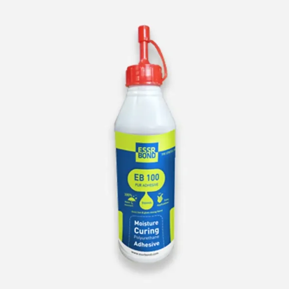 ESSRBOND EB 100 is a moisture curing polyurethane based adhesive for binding of solid wood (especially of hard wood & tropical wood species), and also for many other substrate combinations like HPL/ Cpl, bonding to galvanized iron or metals, bonding expanded polystyrene (sanded) to wood, stone etc.